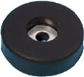 Pie de goma con refuerzo interno metálico. Diámetro externo 38 mm. Altura 15mm.